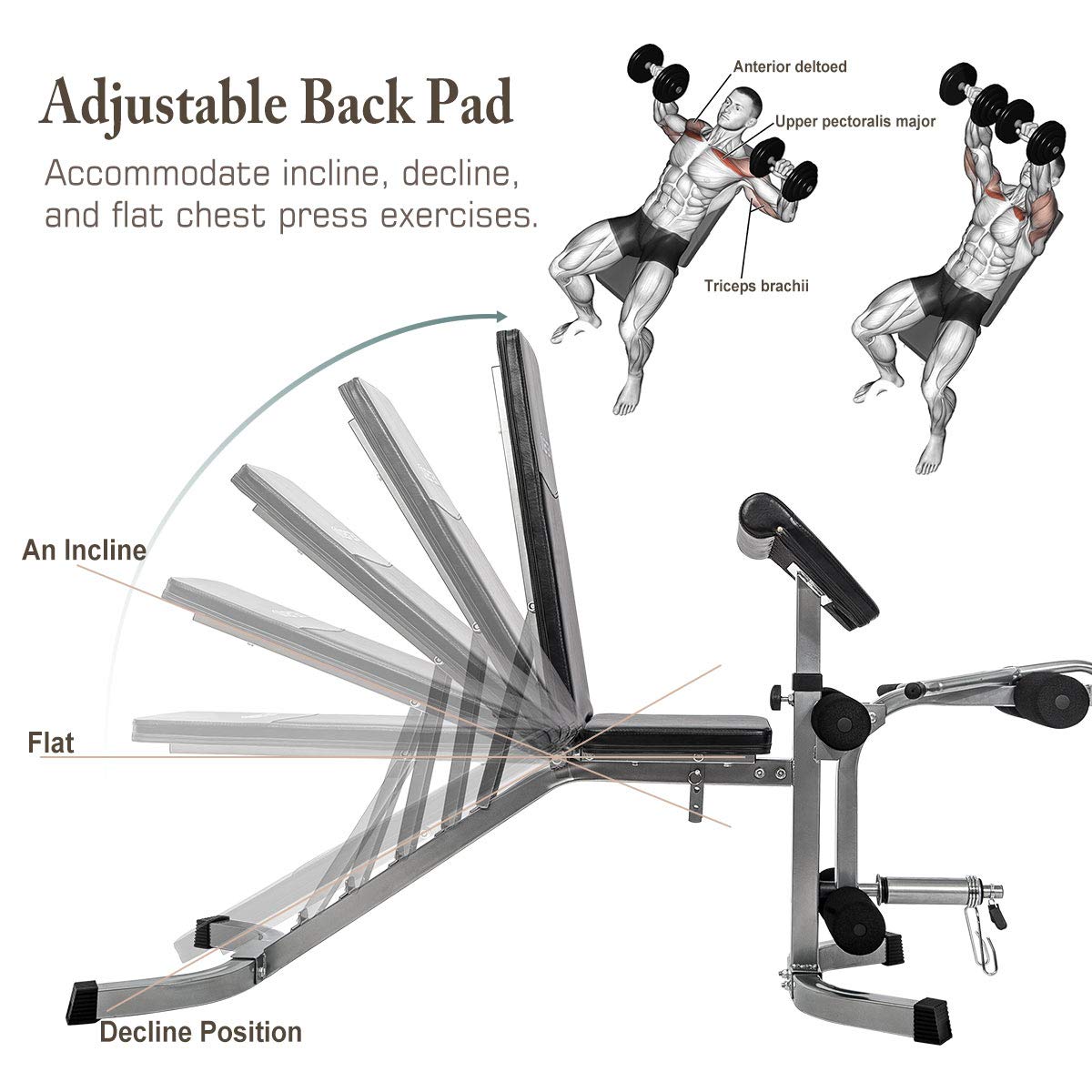 Bàn ghế giảm cân nghiêng nghiêng với nhà phát triển preacher curl và chân để phát triển cả cơ thể trên và dưới của bạn.
